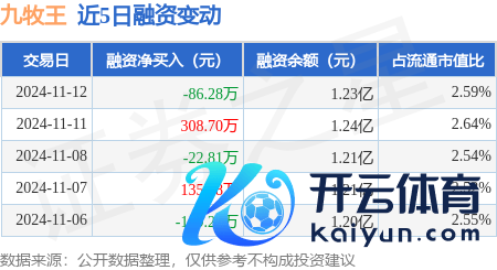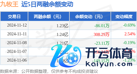 本站音尘,11月12日,九牧王(601566)融资买入246.51万元开云体育,融资偿还332.79万元,融资净卖出86.28万元,融资余额1.23亿元,近20个往来日中有12个往来日出现融资净买入。