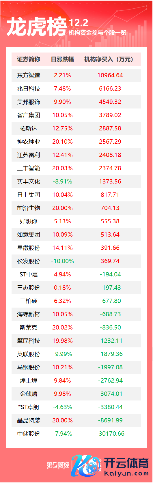 龙虎榜丨机构当天买入这18股,抛售文一科技1.81亿元当天机构净买入前三的股票鉴识是旗天科技、香雪制药、金龙机电云开体育,净买入金额鉴识是8157万元、7274万元、5472万元。