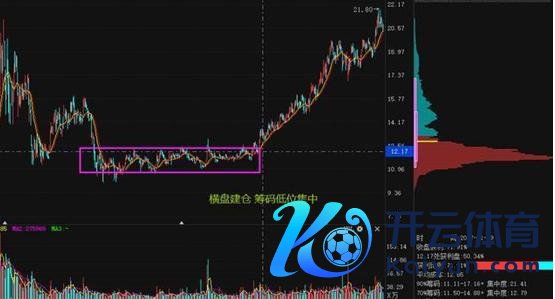 4、挖坑吸筹:股价阅历了一段时问的横盘颠簸之后,股价倏得向下破位,将横盘箱体打穿,但随后股价又被进取拉起;