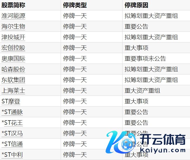 A股停牌教导:14股当天停牌开yun体育网A股停牌教导:14股当天停牌