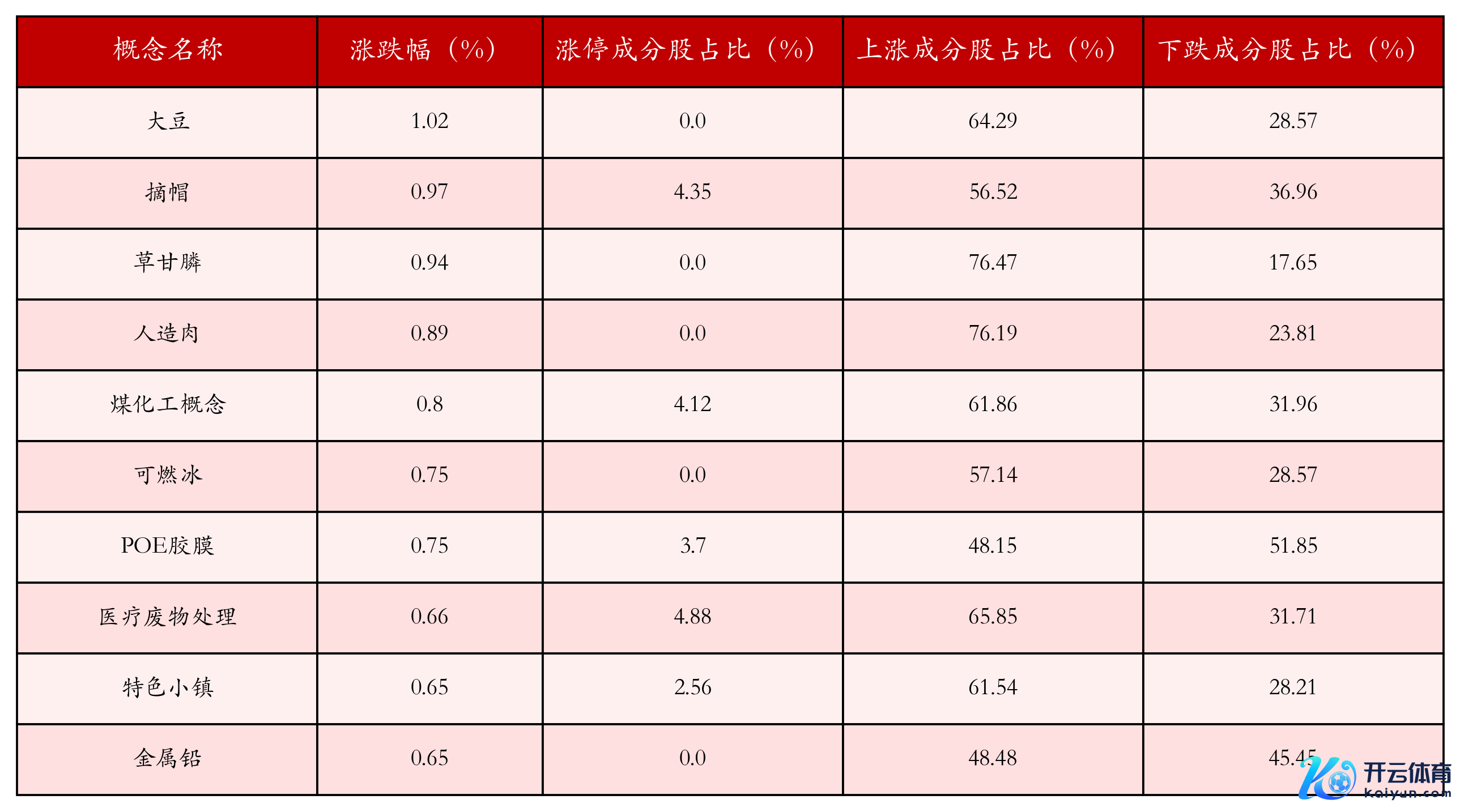 笔据A股想法涨跌幅与所对应的股票池详尽分析,涨幅靠前的三个想法板块划分为:大豆、摘帽与草甘膦。名次前10位的想法板块有关数据见下表: